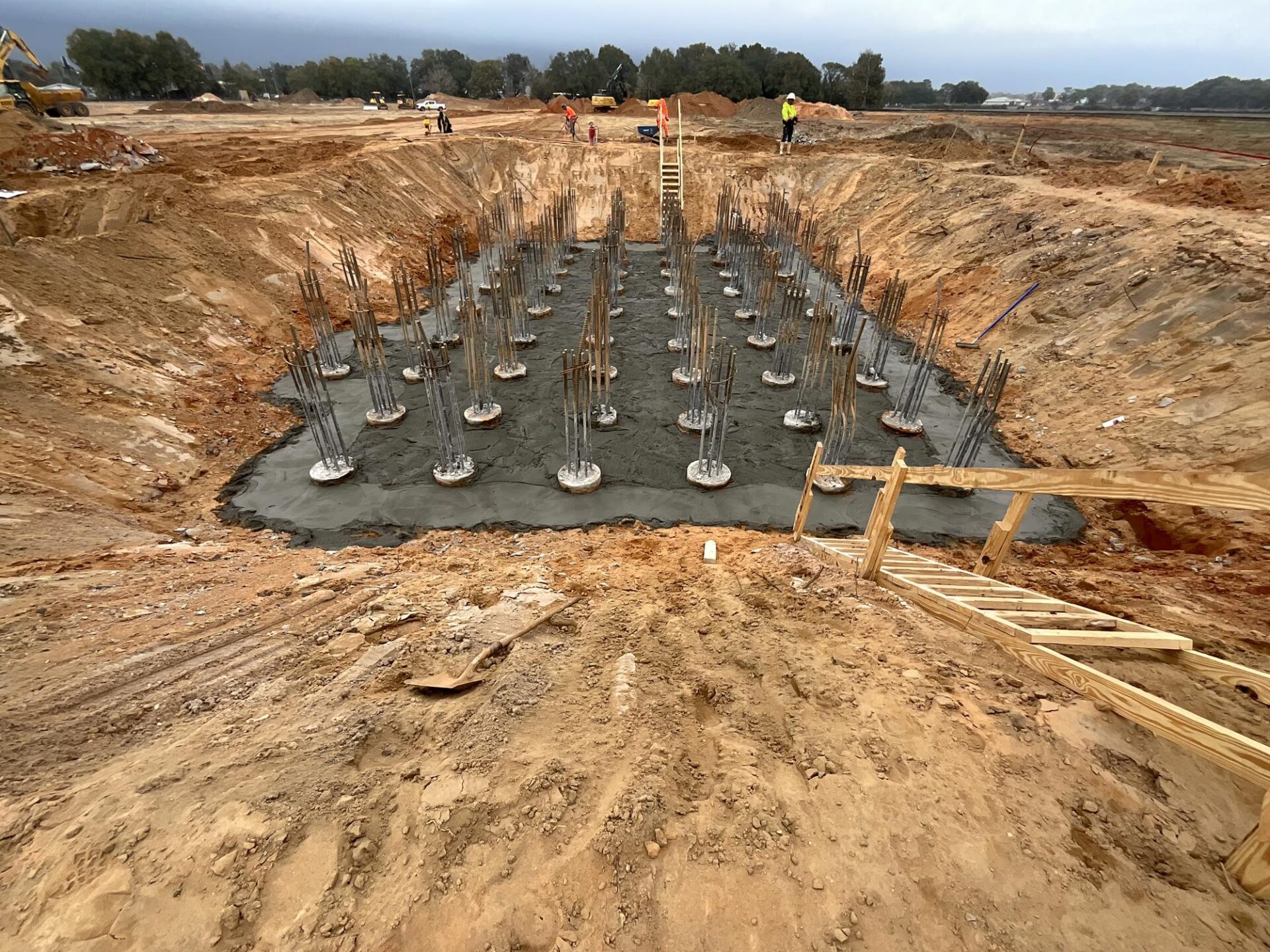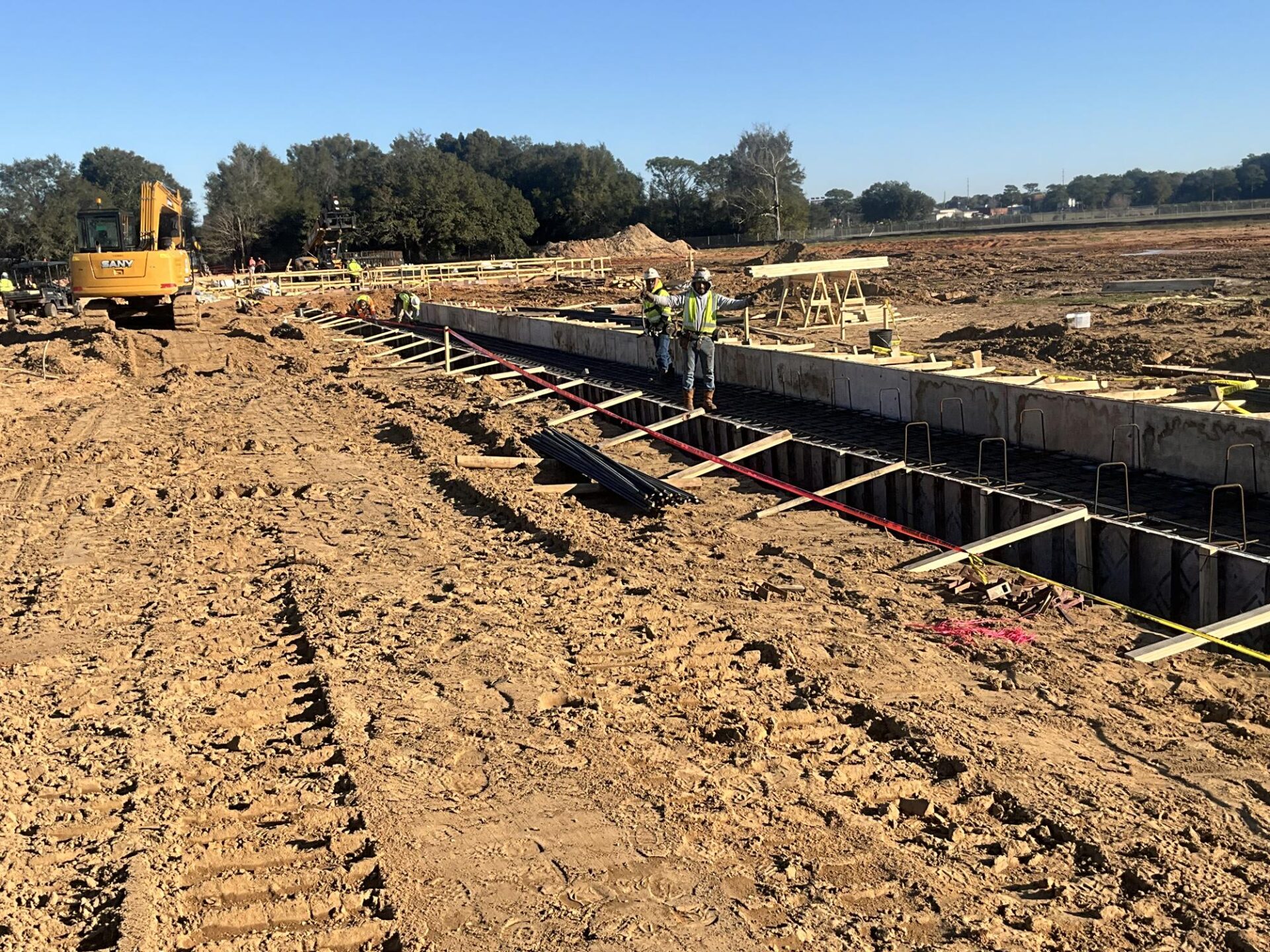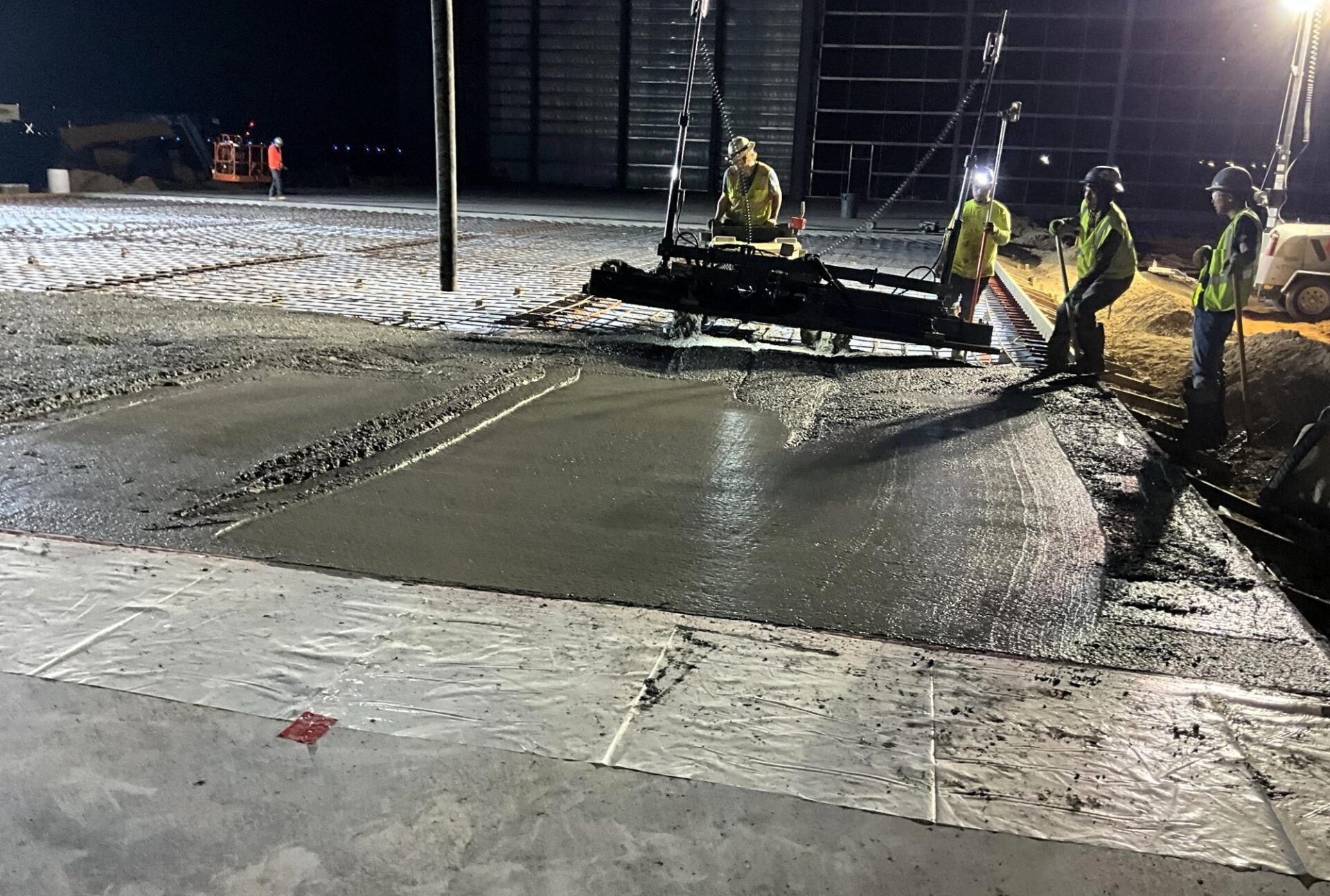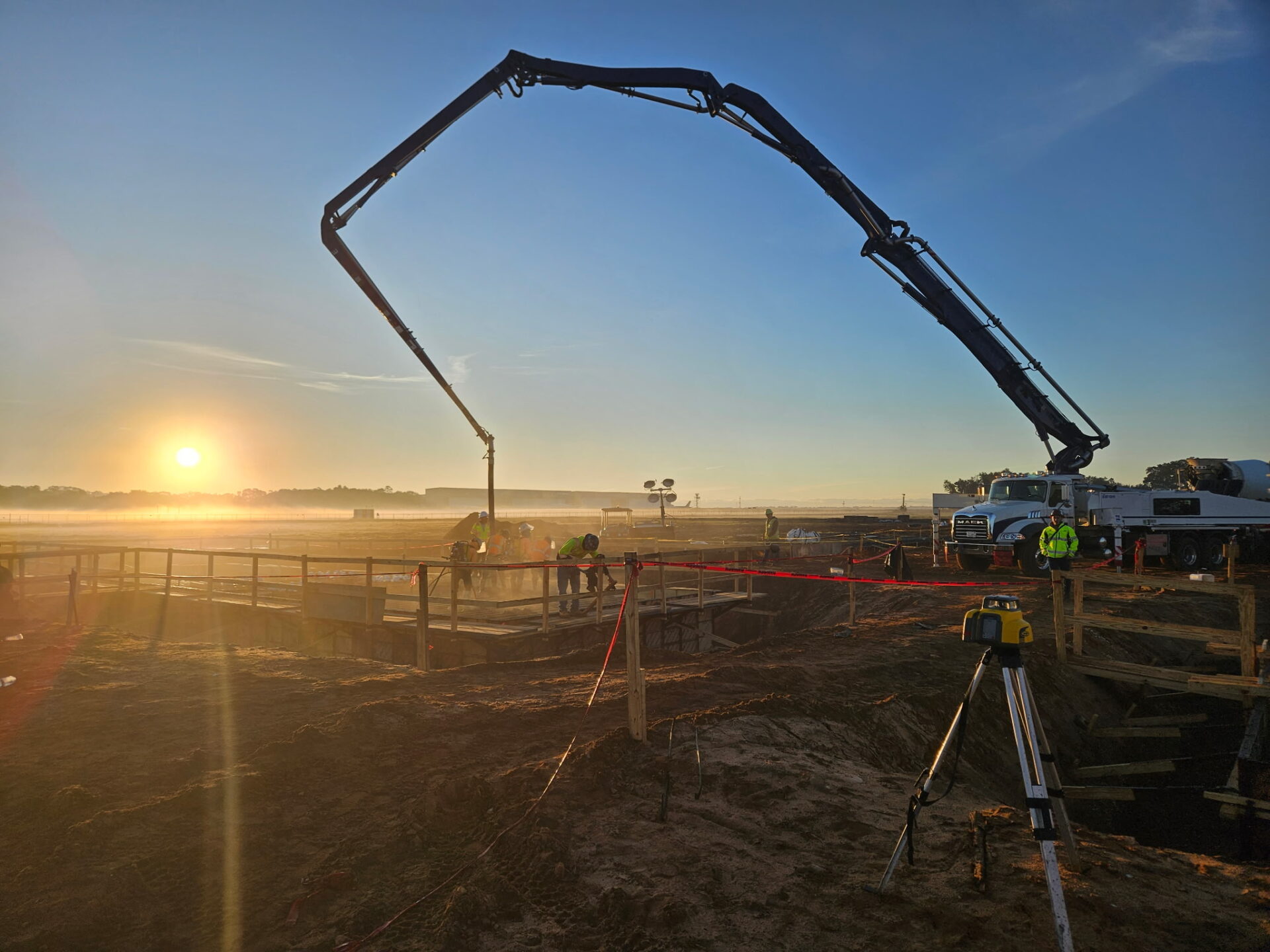 201,100 SF of slab-on-grade for an airport in Pensacola, Florida. Installation of mass concrete foundation, perimeter stem walls, slab and approach paving.